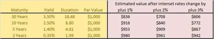 The second primary type of risk that investors face is called interest rate risk. Bonds with fixed coupons typically fluctuate in value inversely with interest rates. Therefore if a bond is sold before maturity then an investor could receive more or less than their original investment. Bonds with longer dated maturities tend to fluctuate in value more than bonds with shorter maturities. However, except in the event of default, the face value of the bond will be paid back at maturity.