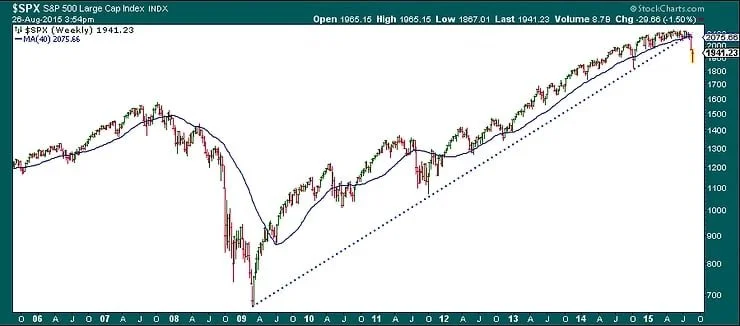 The excuse for the sell-off in equities is mostly being blamed on fears of a slowdown in global growth spilling over from The Great Fall of China. Barring a full-blown currency crisis or a major debt default somewhere (Greece?), we think we might have seen the lows out of the market for this cycle. In order to make this statement we have to have a framework within which to work. The process at Emerald Asset Management is to: 1) identify the trend, 2) trade in sync with the Fed and 3) pay attention to sentiment and valuations.