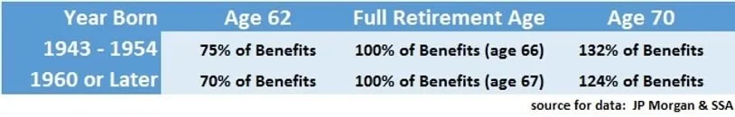 The decrease in benefits for taking an early social security benefit is about 6.25% per year for those born before 1954 and the increase is expected to be about 8% per year for those taking the benefit after full retirement age for both groups. For more on income generating strategies, click here.