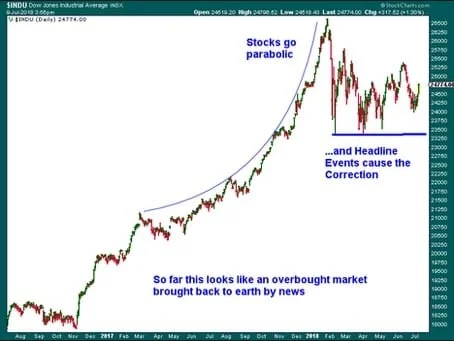 When I first started playing and working on the Street of Dreams in 1991, the Dow Jones Industrial Average was trading around 3000. On January 26th of this year the Blue Chip Index peaked at 26,616.71 before dropping 3256.42 points to hit an intraday low of 23,360.29 on February 9th. Speaking strictly in terms of points, the Dow had dropped in about 10 days by more than its total value in points used to calculate its value when I started my journey down Wall Street. The reason I bring this up is because as the markets march forward, the large price movements tend to scare people, especially those new to investing. But it’s important to keep in mind that what seemed a like a huge drop was really only a 12.23% decline - albeit a rapid one. It’s important to understand that what stock market participants and observers are seeing is normal. Corrections are just part of the game and as of this writing, the correction that has been unfolding appears to be just that—a correction.