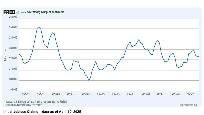 The labor market remained robust, with initial jobless claims totaling 223,000 for the week ending March 29, 2025, an increase of 4,000 from the previous week. This indicates continued strength despite broader economic concerns.