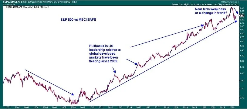 Today, we’re seeing early signs that international markets may be regaining leadership. Regions like Japan and parts of Europe have started to outperform U.S. stocks on a relative basis. While this doesn’t confirm a long-term trend yet, it’s a signal we’re watching closely.